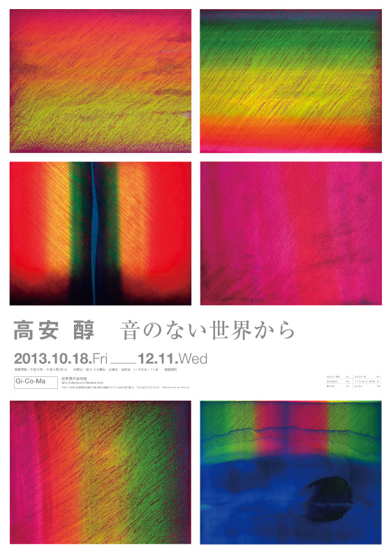 生まれたときから音が聞こえない高安の作品は、豊かな光を湛え、幾層にも重ねられた色彩の諧調が、詩的なイメージを喚起させます。近作は、色彩の層の上に線が軽やかに舞い、生命感あふれる画面を構築しています。